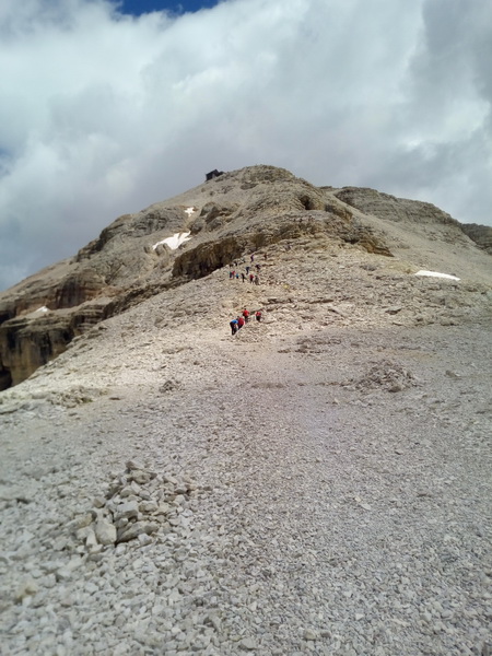 Normalno, po težini, po tehničkoj zahtjevnosti ni približno teško i naporno kao simbol Slovenije, ipak je ovdje od velike pomoći žičara, kao i sama cesta koja vodi na impresivni prijevoj od nekih 2200 m. Hafner nas dvije godine za redom nije pustio, ali Piz Boe se smilovao! Sve u svemu, i ovdje se trebalo pomučiti i daleko od toga da sami od sebe, samo se odjednom pojavite na vrhu. Sve to, nezaboravne vidike, kao i sve ono lijepoga što donosi visoka planina, taj osjećaj da si na visini od preko 3000 m, ovoga puta je nekako sve stavio u drugi plan, nogomet. Svi mi volimo svoje sportove, svi ih cijenimo, svi za njih živimo, ali ako je netko sumnjao zašto je to „najvažnija sporedna stvar na svijetu“, onda ovih dana samo treba otići negdje u planine izvan Hrvatske. Ne znam koji bi to Hrvatski uspjeh ili pronalazak važan za čovječanstvo, tako djelovao na popularnost, srdačnost stranih naroda, prema planinarima iz Hrvatske. Majica, zastavica, amblem, govor, svi te prepoznaju, dan pred veliko finale, svi znaju za Croate, kao da smo filmske zvijezde, ljudi se smiješe, podržavaju, uvažavaju, žele se fotografirati s nama i našim simbolima… Mi smo samo došli u Italiju, u Dolomite, kao i tisuće drugih da uživamo u Alpama, a osjećamo se kao da smo oslobodili ili stvorili Piz Boe. Nogomet je čudesni sport, a naša reprezentacija vjerojatno ni sama nije svjesna koliko je promijenila ugled i ponos običnih ljudi, u ovom slučaju planinara. I zato, hvala „VATRENI“, učinili ste i nas, obične ljude, i naš uspon u biti na samo jedan od tisuću vrhova u Alpama, posebnim, prožetim posebnim osjećajem i emocijama, koje nikada do sada nismo imali priliku doživjeti, uspon nije bio samo uspon, bilo je to više od igre, bio je to dan ponasa i slave!